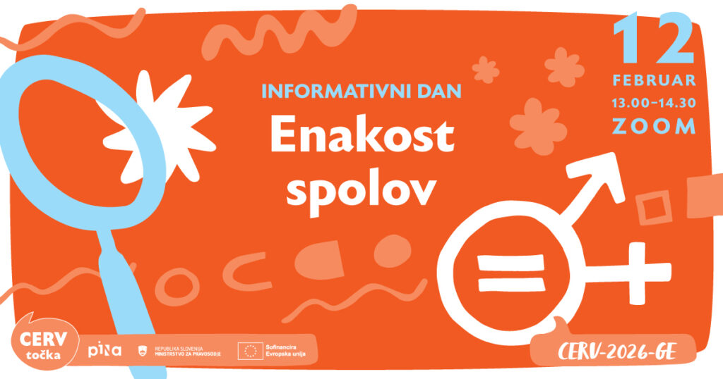 Vabimo vas na informativni dan za razpis Spodbujanje enakosti spolov, ki bo v četrtek, 12. februarja 2026, od 13.00 do 14.30.